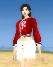 白色迷你短裙,不对称的设计,加上3个精致的小扣