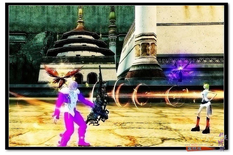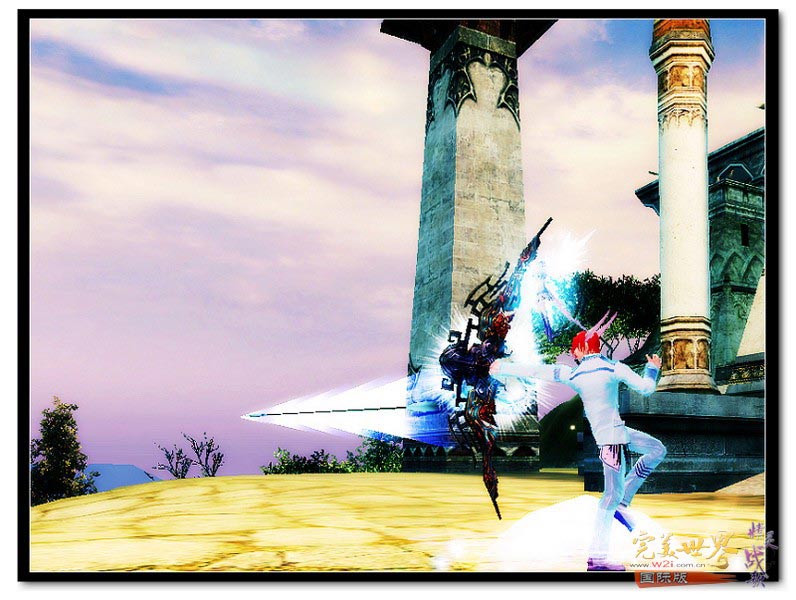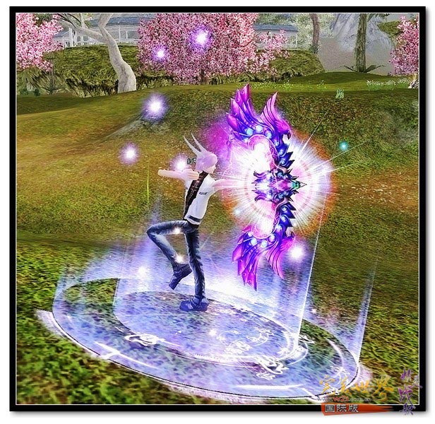翼展技能,以翼之神力攻击周围8米内的所有敌人。都说羽芒PK要善于跑动,近身攻击是羽芒的大忌。不过这一招,可是为了让羽芒在被对手近身的关键时刻反击并脱离困境而设计的哦!技能释放时,紫色的光圈环绕全身,仿佛要用尽全身的力量一般,跳跃而起,与对手近身搏杀,颇有力度。