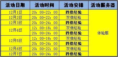 《完美世界国际版2012》为了让玩家们快速升级,尽快体验到精彩纷呈的游戏内容,在体验服特别推出了多倍经验活动。12月1日-12月7日,每天都有多倍经验活动开放,双倍经验、四倍经验,让玩家在体验服畅爽升级!