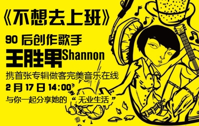 2012年2月17日14点,王胜男将做客完美音乐在线《星光同学会》,与我们一起聊聊她的那些“无业生活”和唱歌道路上的那些有趣的大事儿小事儿,喜欢她的朋友准时守候哦!